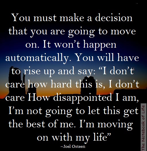 You must make a decision that you are going to move on. It won’t happen automatically. You will have to rise up and say: “I don’t care how hard this is, I don’t care How disappointed I am, I’m not going to let this get the best of me. I’m moving on with my life”