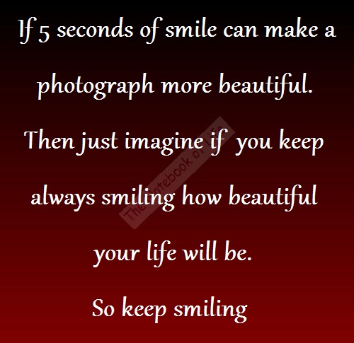 201201/02 Keep Smiling Uncategorized Admin If 5 seconds of smile can make a photograph more beautiful. Then just imagine if you keep always smiling how beautiful your life will be. So keep smiling. ~ Unknown Comments comments