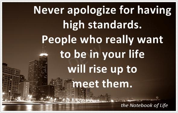 201210/30 Never apologize for having high standards. Life Quotes Admin Never apologize for having high standards. People who really want to be in your life will rise up to meet them. ~unknown Comments comments