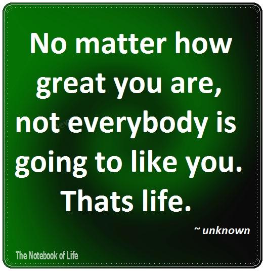 No matter how great you are, not everybody is going to like you. Thats life. ~ unknown